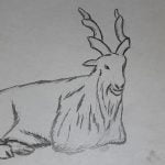 My research uncovered that Jimmy was from the breed of the markhor goat originally from Pakistan. Their straight horns were used for digging in the ground and for removing bark from trees. They often stood on their hind legs, and their odor exceeded regular male goats. Either trait could have contributed to the war in the barnyard. Their uniquely twisted horns were formed in layers like rings in a tree trunk. And like trees, the rings in a markhor goat’s horns coincide with its age.