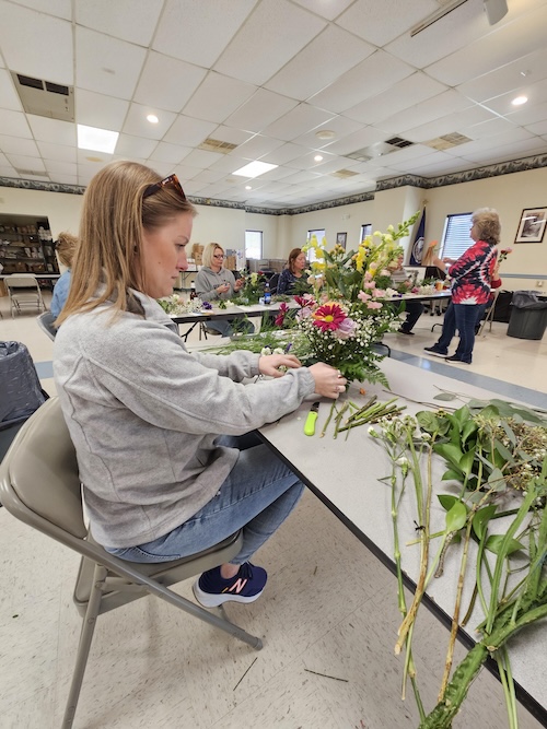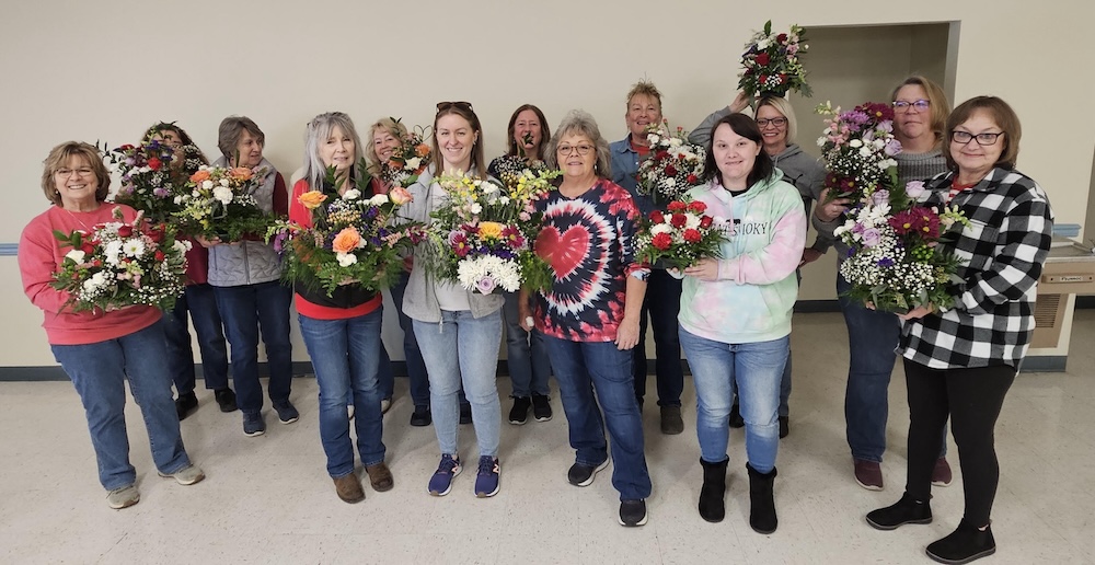 On Saturday, February 14, Anita Kline of Anita’s Custom Florals in Timberville, VA, held a Galentine’s workshop at New Market Eagles 4264. From start to finish, she led the ladies in making their own gorgeous floral arrangements. There were buckets of flowers to choose from and everything everyone needed to create their beautiful tabletop floral displays. A multi-talented lady, Anita will be holding more workshops on a regular basis. On Saturday, March 21, from 12-2, there will be a terrarium workshop at the New Market Eagles. Contact her Mon-Fri, 540-383-4804 to register. Her Facebook page, Anita’s Custom Florals, describes her as a “floral designer and flower farmer”. You can order flowers for all occasions, and she also designs planters for the home or business.