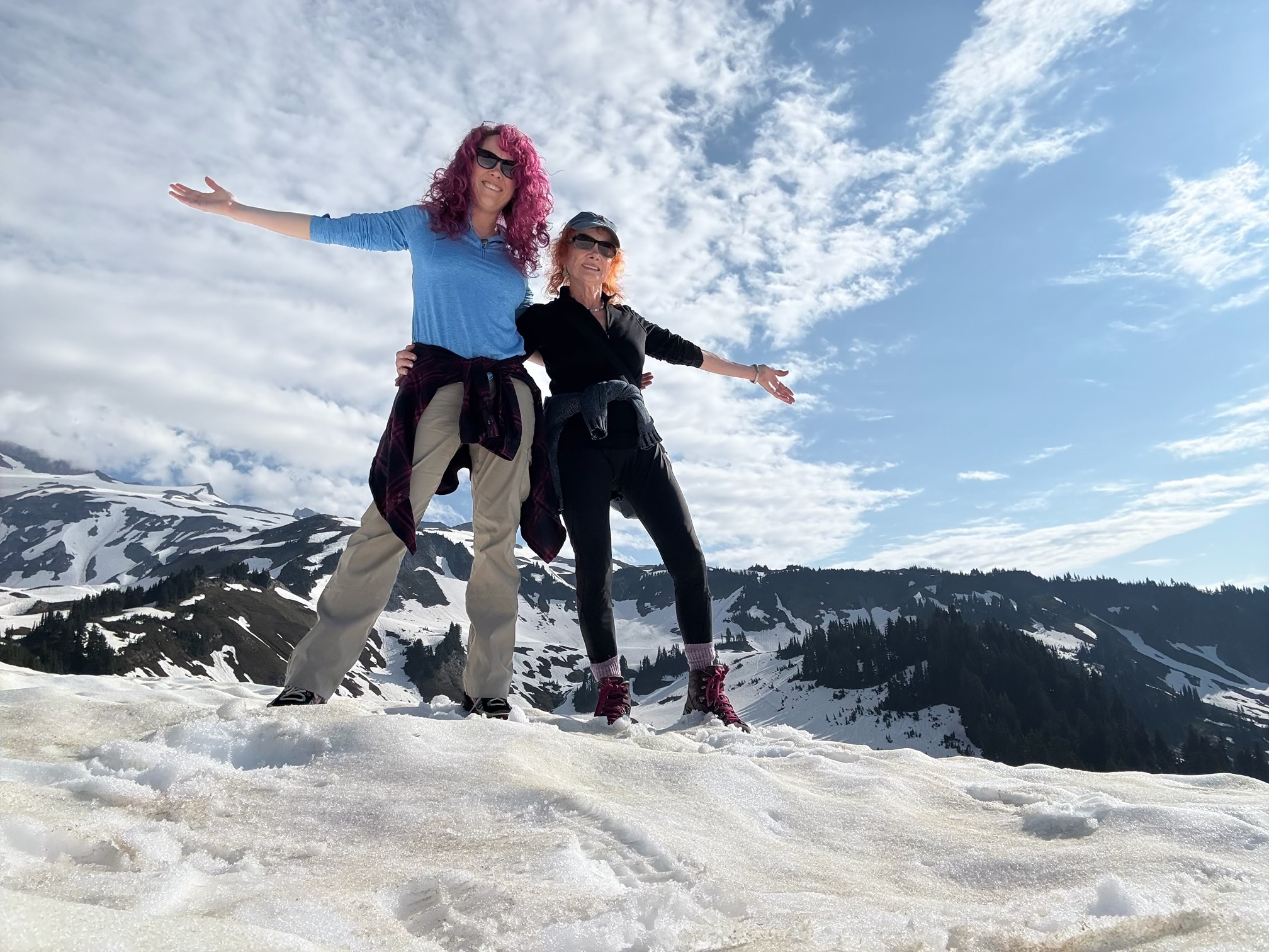 Our trip started with a flight out of Dulles Airport to Seattle, Washington where we rented a car to drive to Mt. Rainier National Park and hiked the Paradise area for 2 days! What a contrast to the heat wave we left behind on the east coast! We had mid-40s to no higher than mid 70s and hiked in snow/ice-packed trails near the top of Mt. Rainier! We started out with hardly anyone on the trail, except a couple of friendly rangers and several marmots. We proceeded on a very slippery trail which was strenuous due to having to maintain balance on the snow and ice. We did make it to the top where there was a mountain goat grazing. The fun part of that hike was that with the ice and snow and slippery slope, we sat down and just slid down the steepest slope – much more fun than trying to sidestep and prevent falling! The views from that Paradise area fit the name with snowcapped mountains surrounding the historic Paradise Inn where we stayed to hike the 2nd day there.