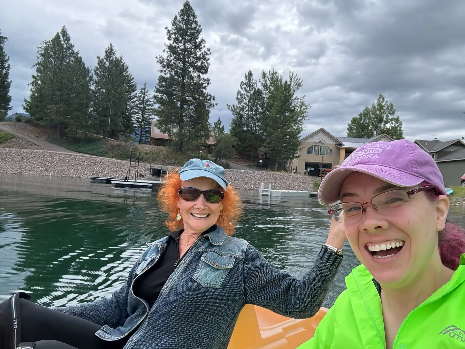 After a very long drive in our red rental Jeep, which we named Roma, we briefly stopped by a lake in Idaho, to then meet my older daughter and family at our Air BnB lake house near Glacier National Park where we stayed 5 days. There are a lot of lakes in the northwestern states. They just keep going! There was a paddle boat provided from the house and going out in it was fun for all!!