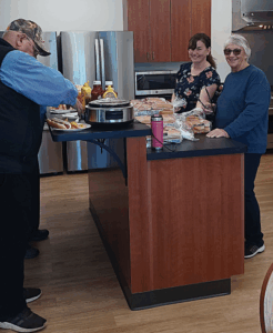 There is a fire truck that holds 750 gallons, a tanker with 3,000 gallons, plus a brush truck and a utility terrain vehicle for wildland fires. There is also a staffed ambulance and a back-up ambulance. The station has rooms for sleeping, as well as a lounge with recliners and a well-equipped kitchen, where hot dogs, chili dogs, chips, and sodas were served. The community room, where the Ruritan Club met for the first time a few days earlier, showed videos of the famous 1985 flood, when no emergency services were available. “Anybody is welcome to stop by anytime and see this new facility,” said Chief Holloway.