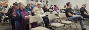 An enthusiastic crowd of about 35 met with the Staff members of the CHIMNEY ROCK CHRONICLE in the Museum Meeting Room on Sun., Oct.12. The staff members shared their experiences as writers for the paper, answered questions, and joined with the group to enjoy refreshments.