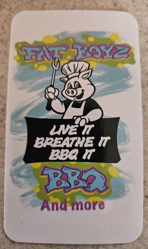 If the Fat Boyz parking lot seems empty, said Richard, don’t think they aren’t busy inside! Seventy five percent of their business is take-out. They can and sometimes do, run out of food before closing time. Last year, according to Richard, Fat Boyz went through 30,000 pounds of meat!