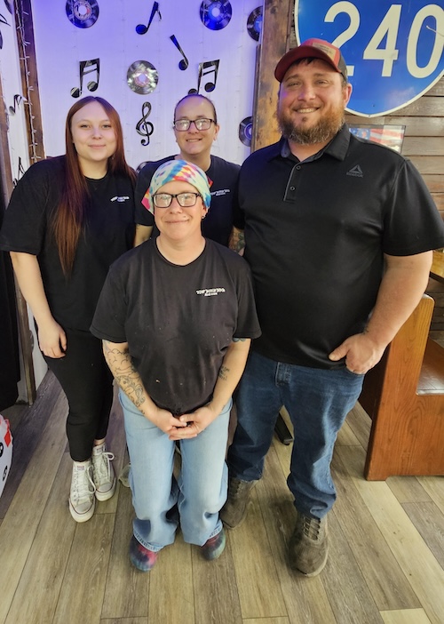 Keeping it in the family, son Landen Turner has been promoted to manager and pit boss. He was away when the photo was taken. A close-knit group of family, close friends, and employees, help make the restaurant the success that it is.