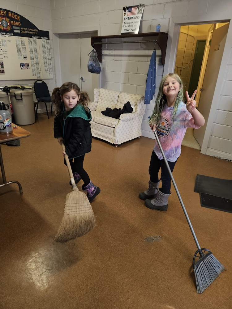 One recent Tuesday, several little girls were feverishly sweeping the entry and the meeting hall in preparation for their guests. In between, kids of all ages ran in and out, helping or watching the adult manning the campfire outside.