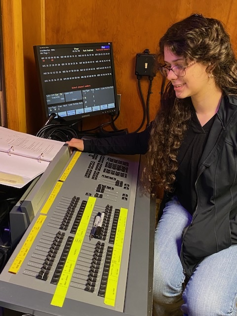 Yes, the young lady you may see at OBP shows is, of course, Addison Cherry. She always wears black because that is the traditional color for stage crew members and technicians. In theatre, black is considered to be “invisible,” so that’s how she can disappear. If she isn’t in the light/sound booth, she’s quickly headed backstage to solve a problem or to see what she can do to help with offstage chores. Why does she smile? The answer is obvious: She loves working in theatre.