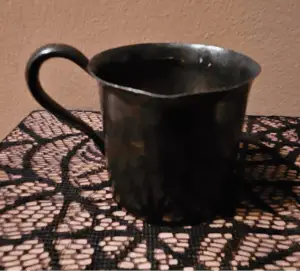 Along with new items, there are plenty of antique and vintage goodies to rummage through. An embossed Fire King loaf pan also came home with her. In addition, a neat little child’s cup was discovered, made by Forbes Silver Co of Meriden, Conn, circa 1894/98.