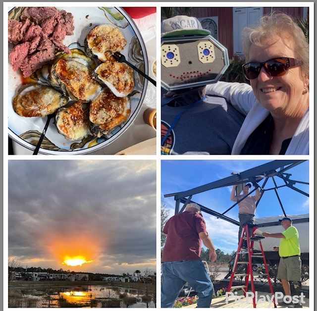 We have been enjoying this, new to us, campground. There are lots of activities. We have also been reconnecting with friends we’ve been snowbirding with for the last 5 years. We meet them for wings on Monday evenings. We enjoy BINGO on Tuesdays (I’ve already won $96 and Sam has won $44!). Friday nights are karaoke. For the last two Saturdays there has been a band entertaining us. I’m back to attending services at a local Baptist church that I’ve fallen in love with and Sam has been attending a service offered here at the campground. The gym here is a good one with no membership fee so I’ve been taking advantage it on Mondays, Wednesdays and Fridays. I have been able to be in the pool and hot tub several times. Proofreading this I am realizing just how old we sound living in a 55 and older campground and enjoying these activities.